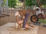 In any case, we still have to get the wool off at least once a year. In the following photo, Jonathan is shearing a Tunis ewe. He has shorn our flocks since we first started raising sheep in the early 1980's. In recent years Jonathan has been accompanied by his son, Ben, and they typically spend most of a day at our place shearing over one hundred animals.
